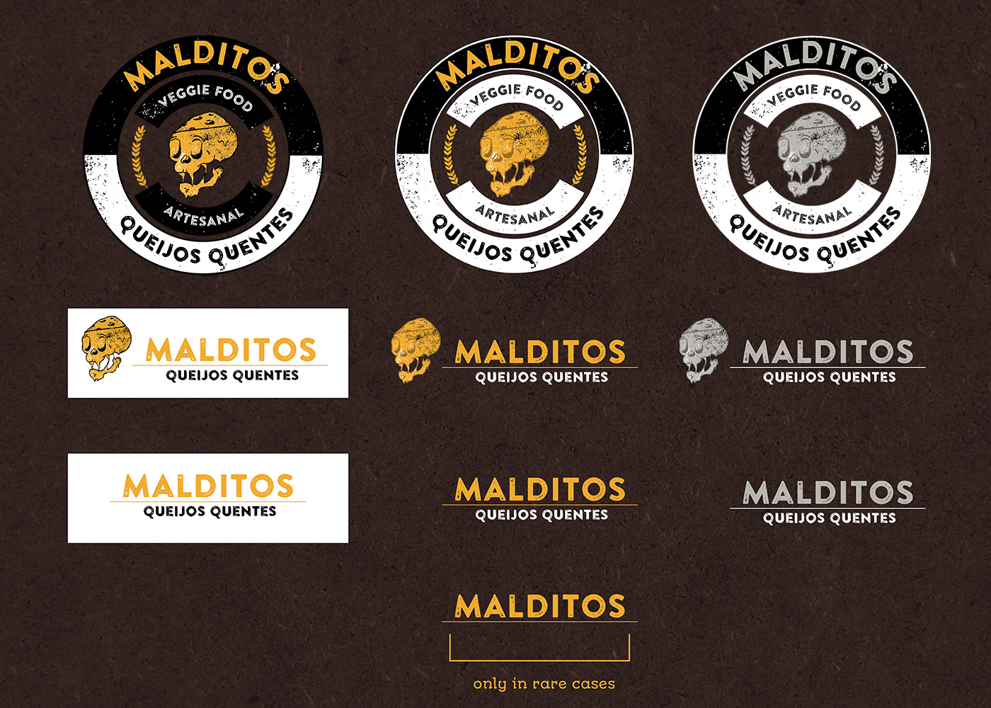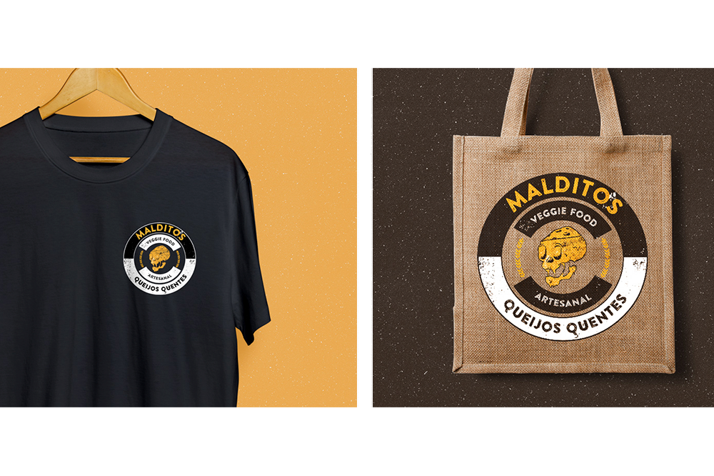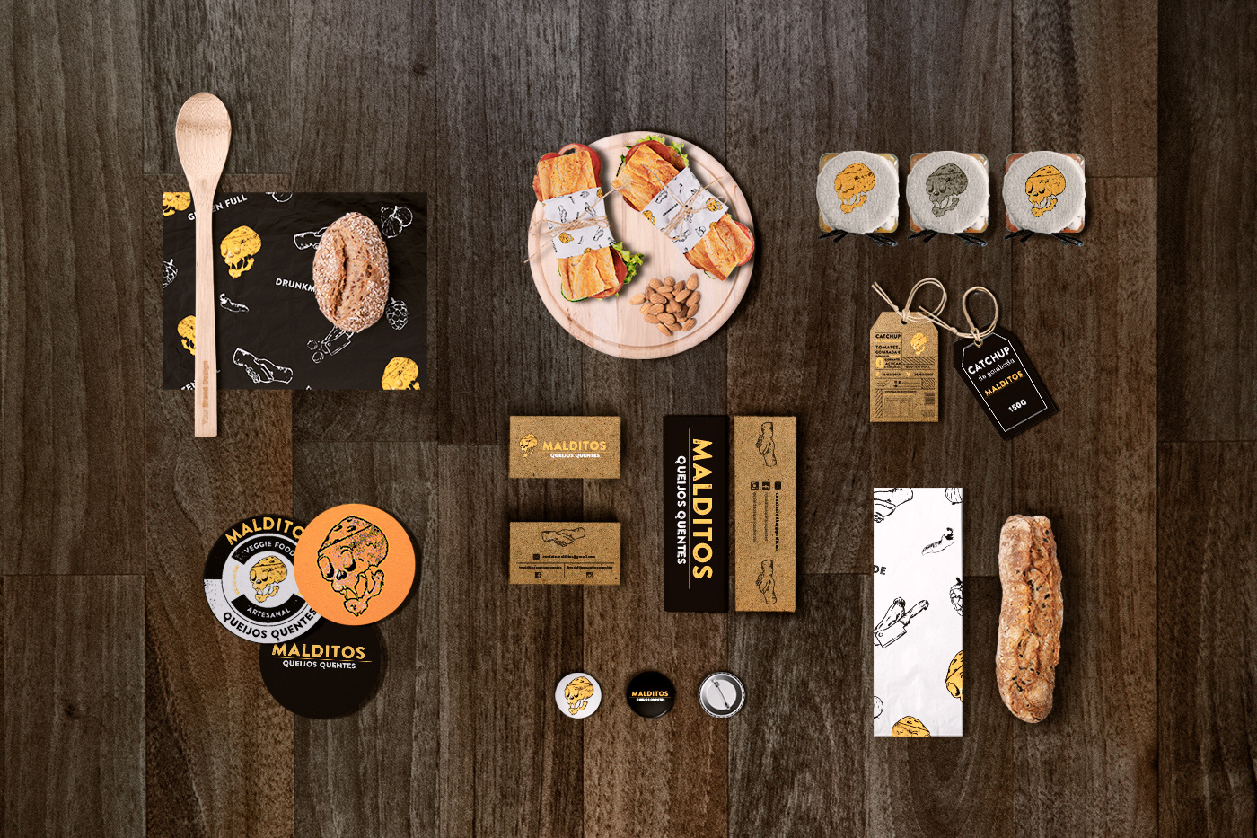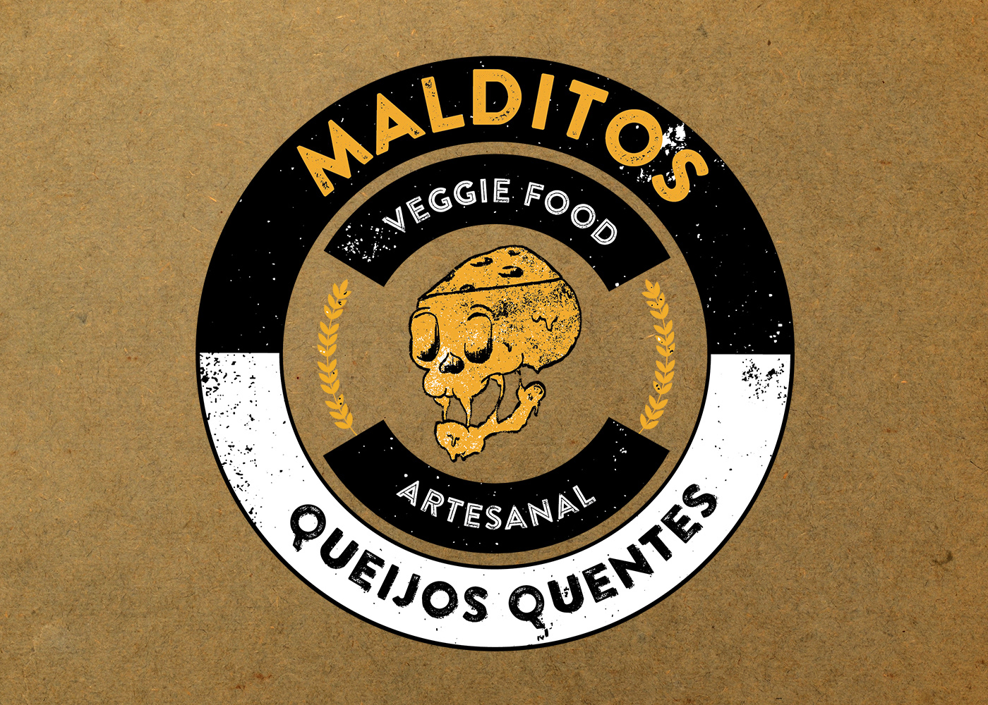 Branding feito para a marca de sanduĂches veganos Malditos Queijos Quentes.