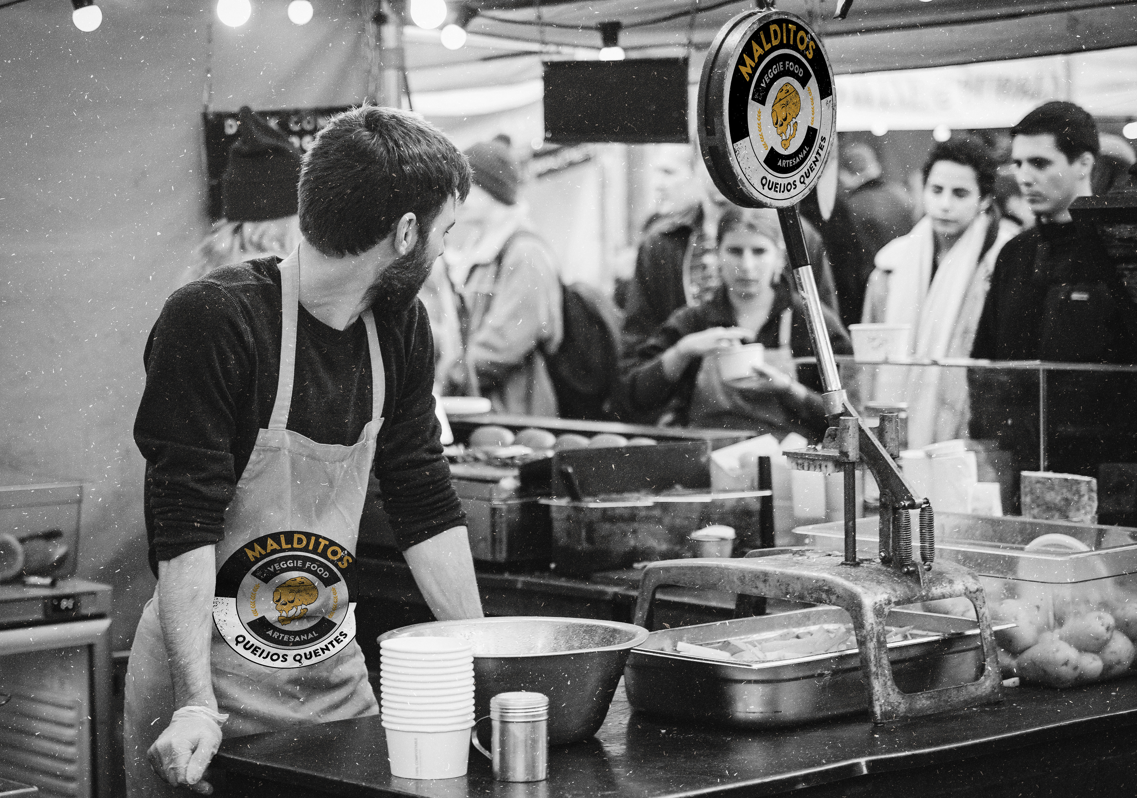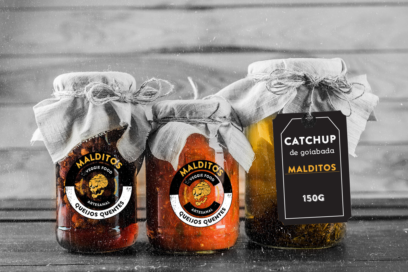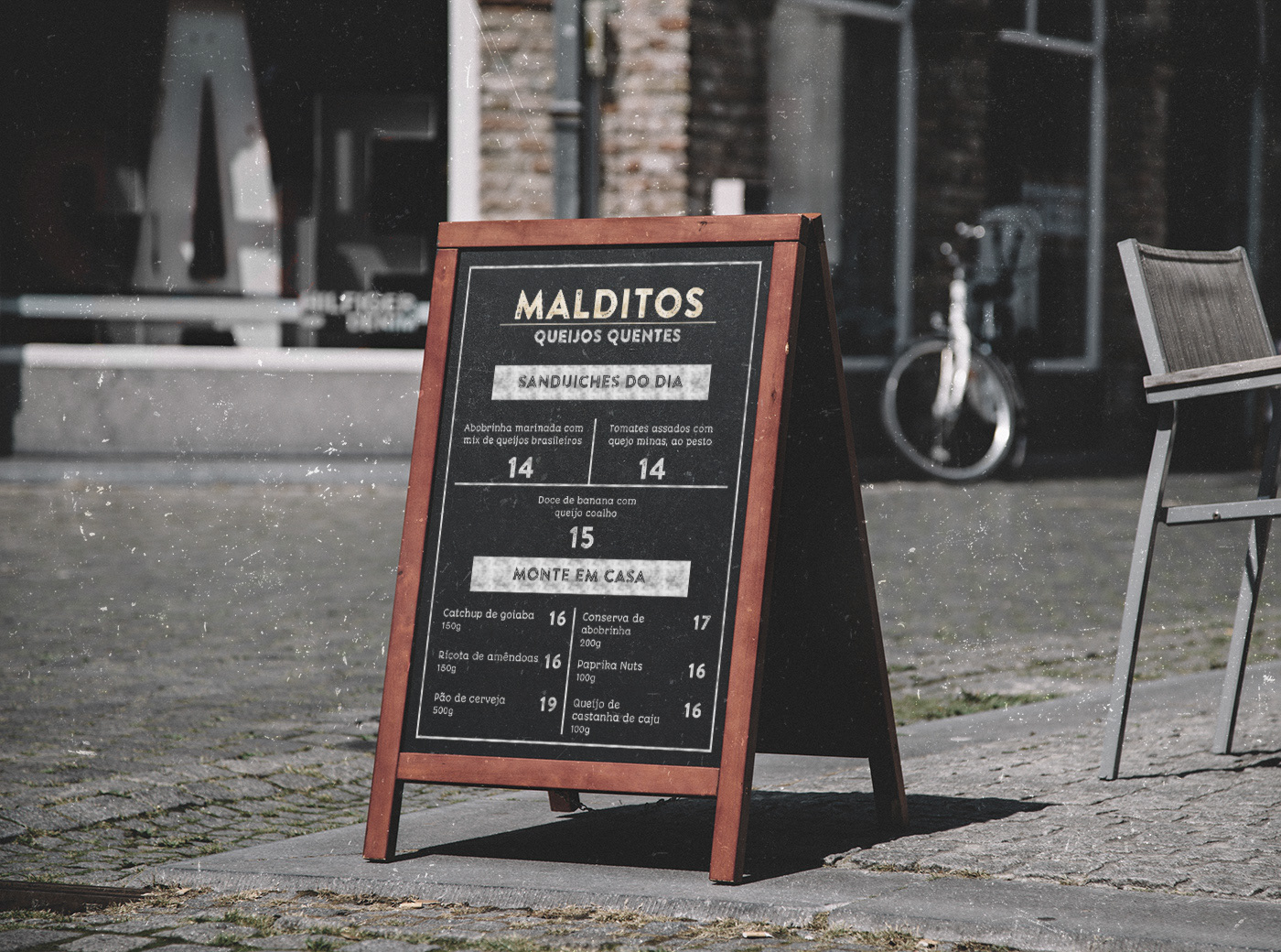 Branding feito para a marca de sanduĂches veganos Malditos Queijos Quentes.