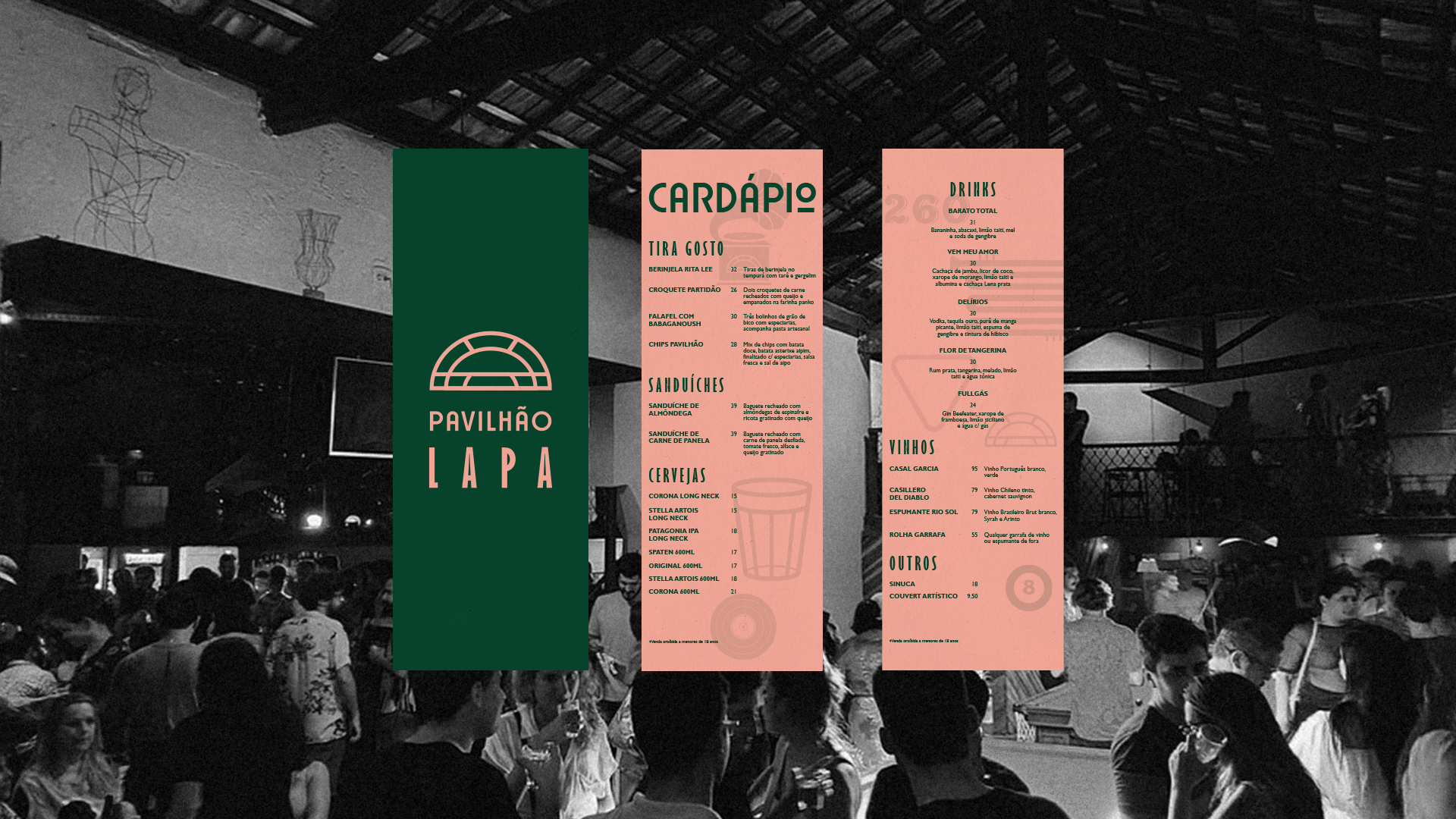 I was commissioned by Pavilhão to develop the bar's branding.